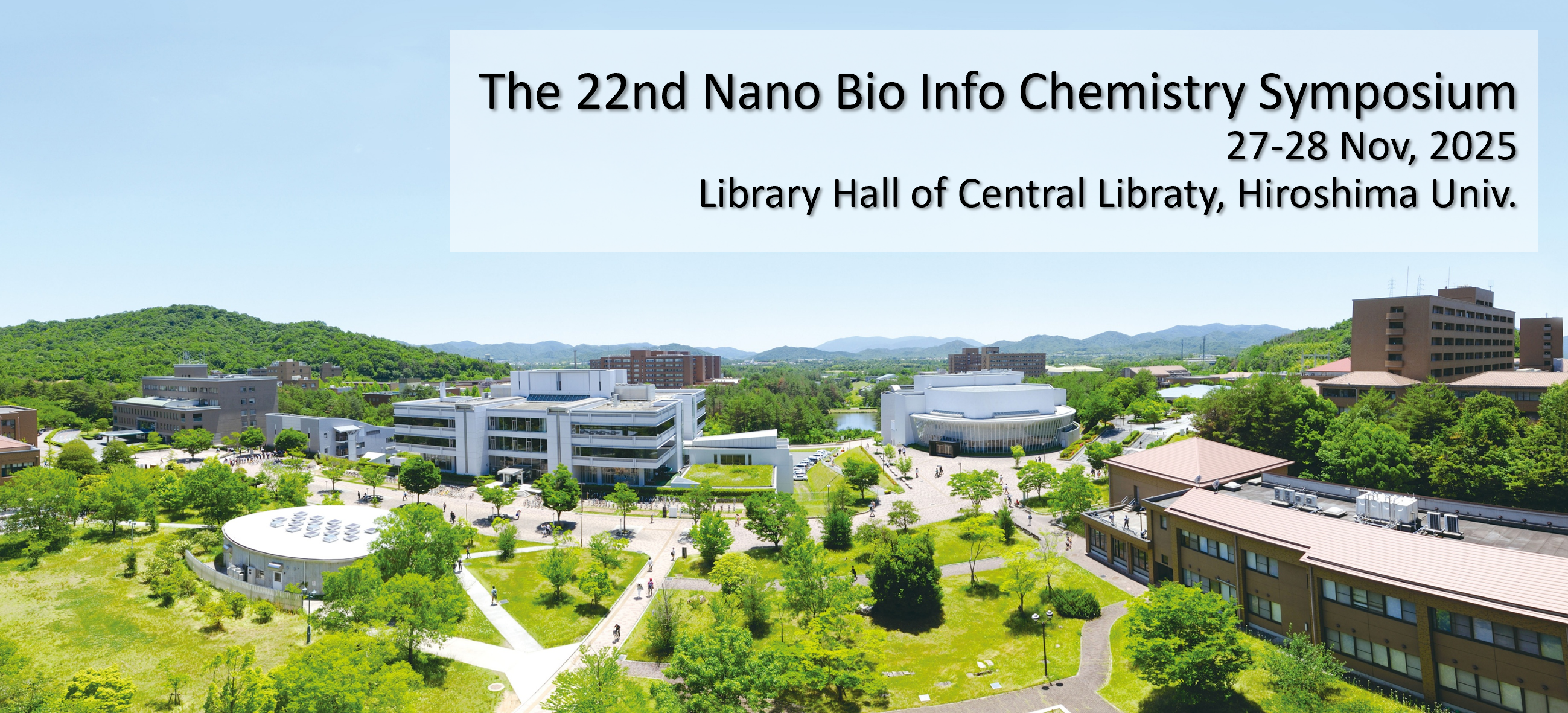 The 22nd Nano Bio Info Chemistry Symposium will be held at the Library Hall of Central Library, Hiroshima University, November 27th Thu - 28th Fri, 2025.